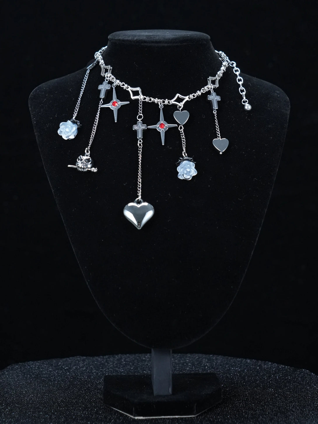 Fall for the dark side of love with this Y2K Gothic Heart & Cross Charm Necklace.