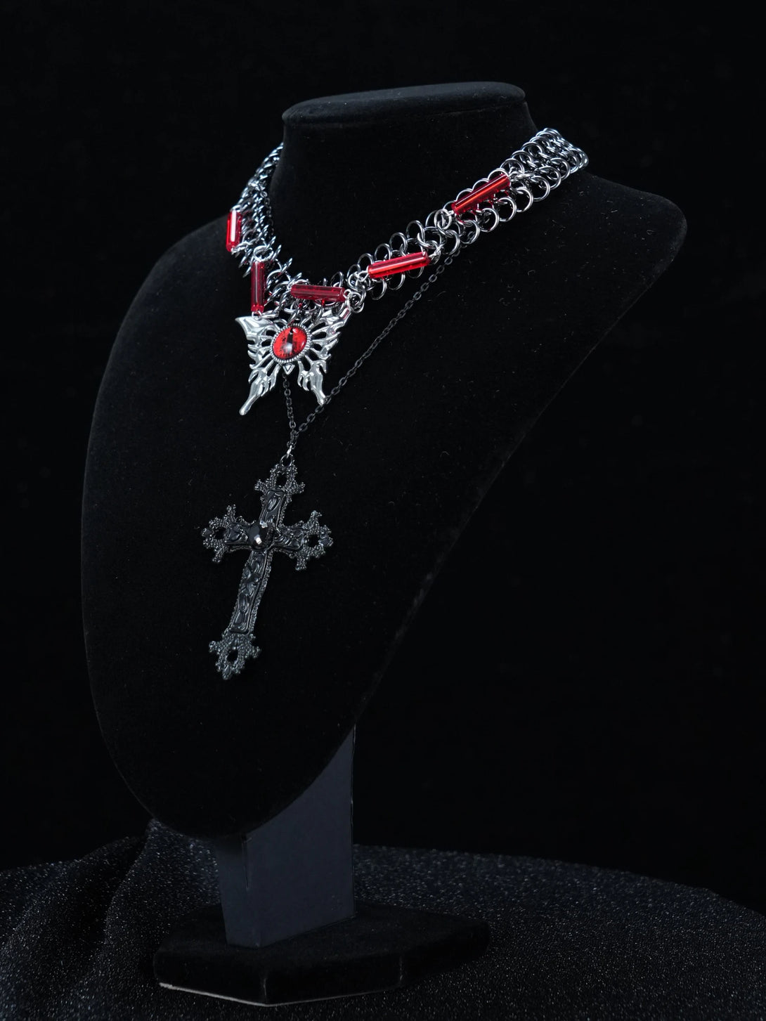 Gothic jewelry with red accents