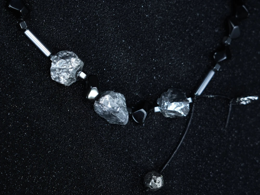 ⚫ Mixed black & crushed-silver Stone for high-contrast drama